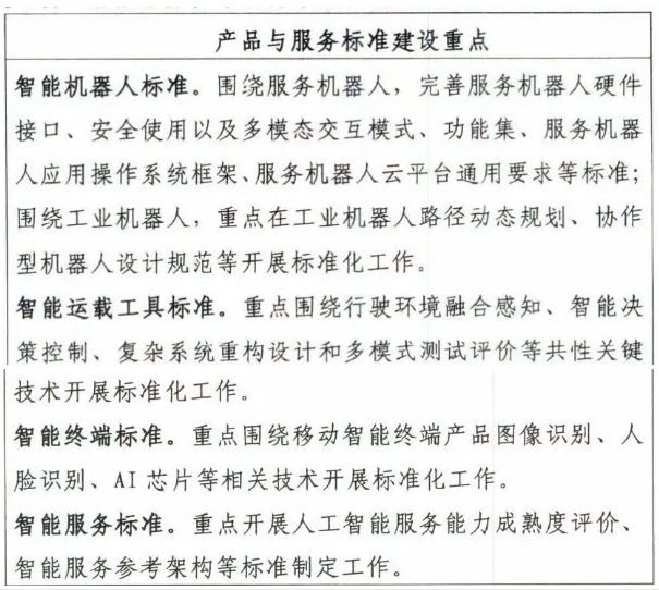 產品與服務標準包括智能機器人、智能運載工具、智能終端、智能服務等部分,如圖8所示。