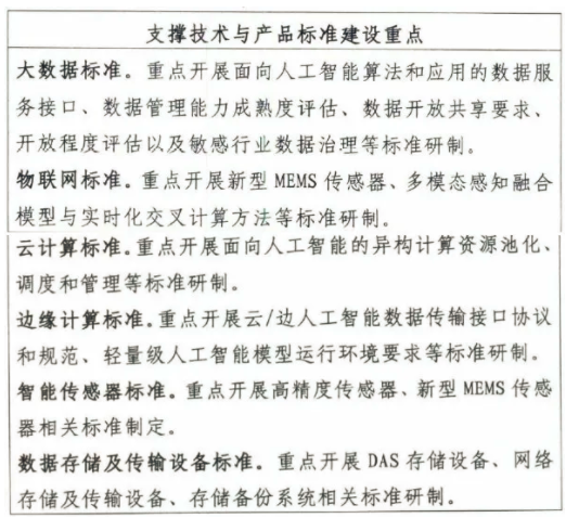 1.大數據標準。規范人工智能研發及應用等過程涉及到的數據存儲、處理、分析等大數據相關支撐技術要素,包括大數據系統產品、數據共享開放、數據管理機制、數據治理等標準。