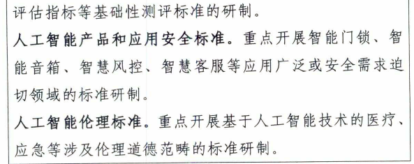 人工智能產品和應用安全標準主要是為保障人工智能技術、服務和產品在具體應用場景下的安全,可面向智能門鎖、智能音響、智慧風控、智慧客服等應用成熟、使用廣泛或安全需求迫切的領域進行標準研制。
